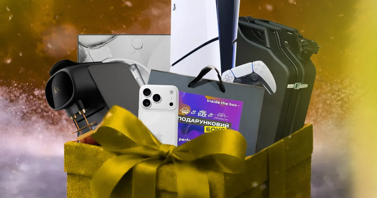 серед подарунків - новенький iPhone 17 Pro, телевізор 50-ти дюймовий, PlayStation 5, 2 аерогрилі, 3 кавові машини,2 каністри з алкоголем, 10 подарункових боксів🥰