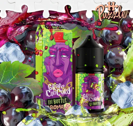 In Bottle Grape Concord — це класичний, насичений смак винограду сорту Конкорд. Він поєднує в собі інтенсивну солодкість з характерною для цього сорту терпкістю та виразною "виноградною" нотою, що створює багатий і реалістичний аромат, який нагадує про виноградний сік або желе.