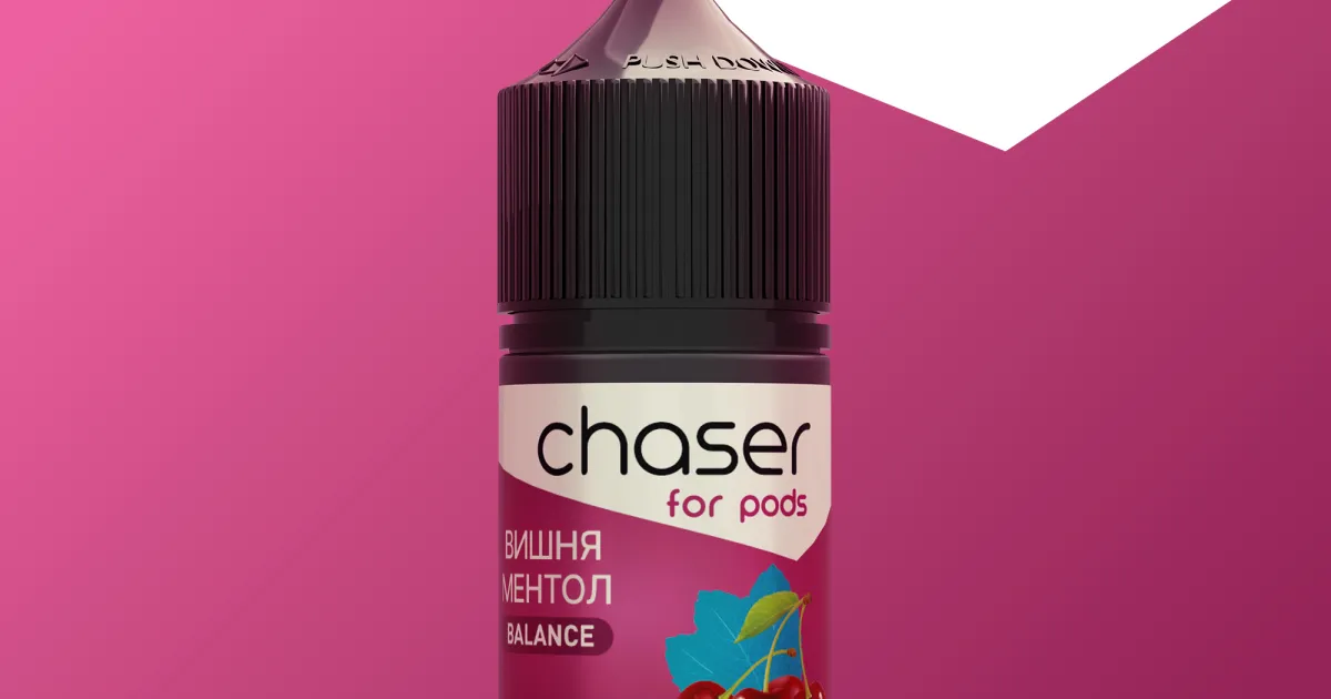 CHASER For Pods "Вишня Ментол" поєднує в собі класичний солодкувато-кислий смак стиглої вишні з освіжаючою прохолодою ментолу.