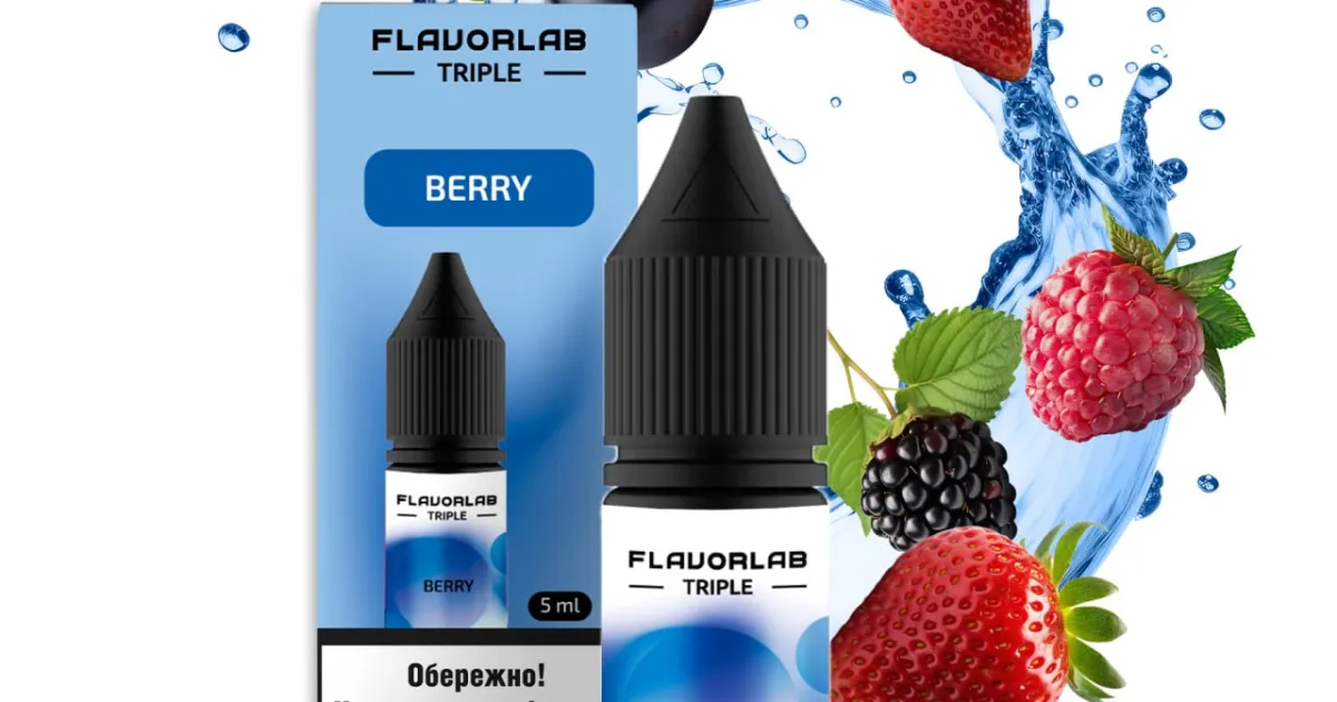Flavorlab Triple Berry насичений і гармонійний мікс з трьох різних ягід, що створює багатогранний, солодкий і водночас освіжаючий смаковий профіль. Солодка полуниця, терпка малина, чорниця/лохина або ожина.