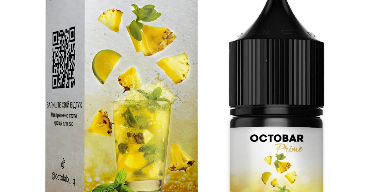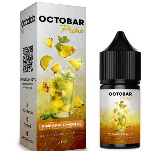 Octobar Prime Pineapple Mojito — це освіжаючий, солодкий і трохи кислуватий тропічний смак, де соковитий ананас ідеально поєднується з м'ятно-лаймовою свіжістю мохіто. Він ідеально підійде для тих, хто любить фруктові коктейльні аромати з вираженою прохолодою і бадьорістю.
