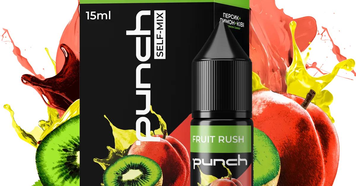 Punch Fruit Rush - об’єднує освіжаючі смаки соковитого персика, яскравого лимона та екзотичного ківі. Ідеальне поєднання фруктових нот створює збалансований і солодкий аромат, що заряджає енергією та дарує справжнє фруктове задоволення з кожним вдихом